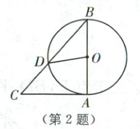 3.(2023·无锡中考)如图,$AB$是$\odot O$的切线,$B$为切点,$OA$与$BC$交于点$D$,$AB = AD$,若$\angle C = 20^{\circ}$,则$\angle OAB$等于(
