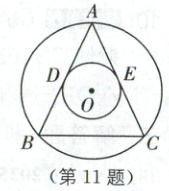 11.(8分)如图,在以点$O$为圆心的两个同心圆中,大圆的弦$AB$、$AC$分别与小圆相切于点$D$、$E$. 求证:$\angle B = \angle C$.