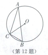 12.如图,$\triangle ABC$是$\odot O$的内接三角形,若$\angle B=52^{\circ}$,则$\angle ACO$的大小是