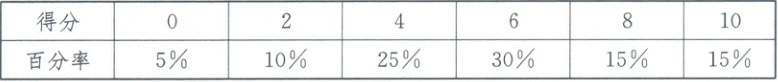 2.B [解析]由题意,得$0 × 5\%+2 × 10\%+4 × 25\%+6 × 30\%+8 × 15\%+10 × 15\%=5.7$(分),故该题的平均得分为5.7分.故选B.