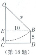 18.$10^{2}+(x + 1 - 5)^{2}=x^{2}$ [解析]设绳索长$OA = OB =x$尺,由题意,得$10^{2}+(x + 1 - 5)^{2}=x^{2}$.