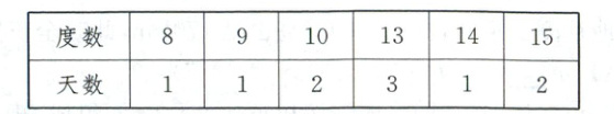 (1)13 13 7 [解析]13度出现了3次,最多,故众数为13度;从小到大排序,第5位和第6位的用电量均是13度,故中位数为13度;极差为15-8=7(度).