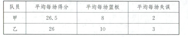 (3)规定“综合得分”为:平均每场得分$ × 1 + $平均每场篮板$ × 1.5 + $平均每场失误$ × (-1) $,且综合得分越高表现越好.请利用这种评价方法,比较这六场比赛中甲、乙两名队员谁的表现更好.