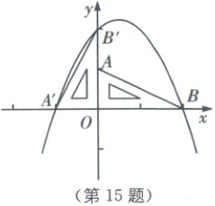 15.(12分)(分割法 中考新考法 动点问题)(山东青岛一中自主招生)如图,在平面直角坐标系中放置一直角三角形,其顶点为$A(0,1)$、$B(2,0)$、$O(0,0)$,将此三角板绕原点$O$逆时针旋转$90°$,得到$\triangle A'B'O$,一抛物线经过点$A'$、$B'$、$B$.