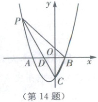 14.(10分)(2024·福建中考)如图,已知二次函数$y = x^2 + bx + c$的图像与$x$轴交于A、B两点,与$y$轴交于点C,其中$A(-2,0)$、$C(0,-2)$.