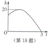 18. $0\leqslant w\leqslant5$ $5\leqslant w\leqslant20$ [解析]$\because$物体运动的最高点离地面$20$米,物体从发射到落地的运动时间为$3$秒,$\therefore$抛物线$h=-5t^{2}+mt+n$的顶点的纵坐标为$20$,且经过点$(3,0)$,$\therefore\begin{cases}\frac{4×(-5)n-m^{2}}{4×(-5)}=20,\\-5×3^{2}+3m+n=0,\end{cases}$