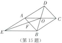 15. (2023·抚顺中考)如图,平行四边形$ABCD$的对角线$AC, BD$相交于点$O$,过点$B$作$BE // AC$,交$DA$的延长线于点$E$,连接$OE$,交$AB$于点$F$,则四边形$BCOF$的面积与$\triangle AEF$的面积的比值为