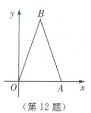 12. 如图,$\triangle AOB$三个顶点的坐标分别为$A(4,0), O(0,0), B(2,6)$,以点$O$为位似中心,将$\triangle AOB$在第一象限缩小,若点$B$的对应点$B'$的坐标$(1,3)$,则$\frac{S_{\triangle A'O'B'}}{S_{\triangle AOB}}$的比值为