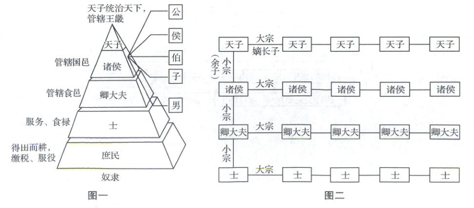 2. 据材料二,分别指出图一和图二反映的西周主要的政治制度。这两大制度反映了西周时期的哪些国家特征?