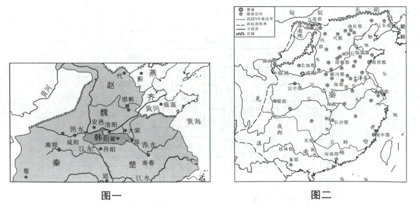 2.结合下列两幅地图,简述秦统一疆土的过程。据图二所示的《秦朝形势图》,指出秦朝的疆域范围。