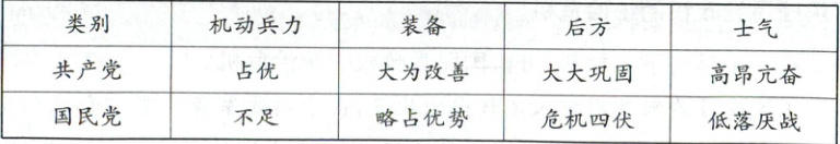 2.变化:国民党的力量严重削弱,共产党的力量显著增强。军事行动:辽沈战役、淮海战役和平津战役。意义:基本摧毁了国民党的主要军事力量,为中国革命在全国的胜利奠定了基础。