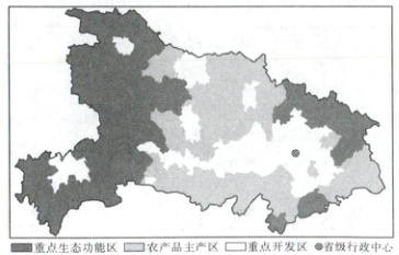 下图为“湖北省主体功能区中重点开发区域和限制开发区域的空间分布示意图”(如下图所示)。读图完成1~3题。