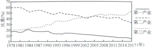 (2025扬州月考)下图为“京津冀地区1978—2017年产业结构变化图”(如下图所示)。京津冀协同发展战略是2014年政府为了促进区域协调发展而提出的一项重要战略。该战略的核心是有序疏解北京非首都功能,推动京津冀地区在交通一体化、生态环境保护、产业升级转移等重点领域率先取得突破。据此完成3~5题。