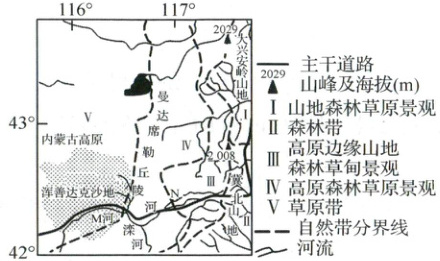 2. 典型地段考察:该团队对沿途的M河、N河进行考察,发现两条河流水文特征迥然不同。指出M、N两河水文特征的差异,并分析原因。