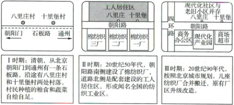 5.C 该区域I时期有村落,Ⅱ时期有工人居住区,Ⅲ时期现代化社区和老旧小区并存,说明该区域在发展过程中始终存在的土地利用方式是住宅用地,A错误;I时期农业生产规模小的主要原因是村民种植粮食和蔬菜自给自足,发展的是自给农业,B错误;Ⅱ时期该地建设纺织厂,提供了就业机会,吸引人口迁入,促进了当地人口和经济增长,C正确;Ⅱ时期,工业出现是城镇化起步标志,D错误。故选C。
