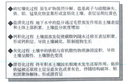 8. 在某地区调查中,研究人员发现以下现象:土壤呈青灰色,地下水位较高,植物根系生长受阻,土壤中铁元素含量发生变化。该地区最有可能发生的土壤发育过程是(