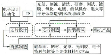 我国芯片产业启动晚,但目前封装测试产业实现了技术上的国产替代。近几年来,全球半导体厂商纷纷将封装测试厂转移到我国。芯片产业在上海发展较早,随着长三角集成电路产业链联盟的建立,上海正将芯片产业辐射到周边技术发达地区。下图为“芯片制造产业链流程图”(如下图所示)。