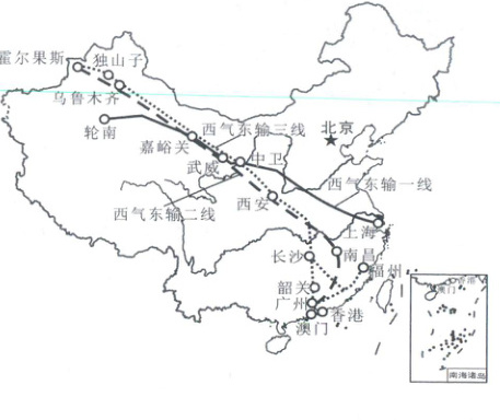 材料二 下图为“我国‘西电东送’工程示意图”(如下图所示)。