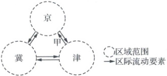 2.B 图中箭头表示区际流动要素的流向,结合上题分析可知,天津主要发展以非农产品为原料的加工工业,北京以高新技术产业、文化产业、先进服务业为主;再根据箭头指向可知,该流动要素由天津流向北京,因而判断甲箭头代表的含义是工业最终产品与高技术产品的流向,B正确。北京产业和技术水平均高于天津,因而产业与技术扩散的流向、信息和资金支持的流向应从北京流向天津或河北,A、C错误。河北采掘业发达,劳动力数量充足,但相对来说经济发展水平较低,因而资源、劳动力以及初级产品的流向应由河北流向天津和北京,D错误。故选B。