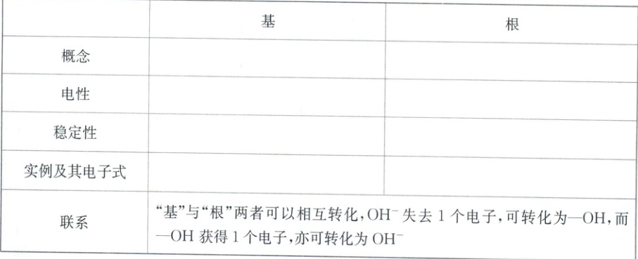 电中性 带电荷 不稳定;不能独立存在 稳定;可独立存在于溶液中或熔融状态下