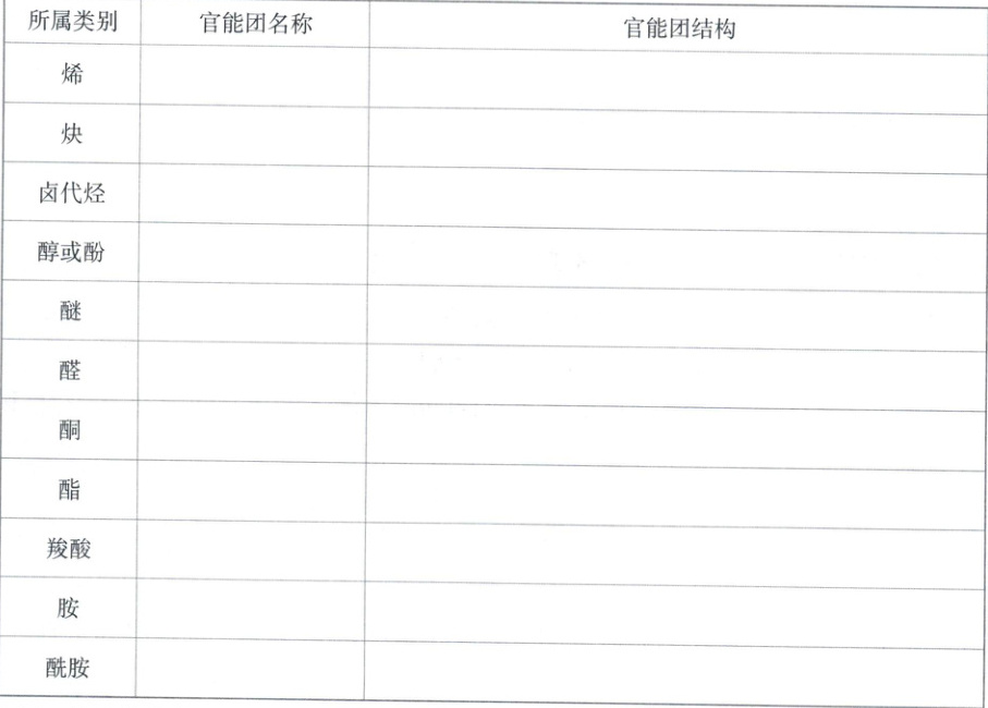 (2) 讨论:什么是官能团?官能团与有机物性质有什么关系,请填写下表。