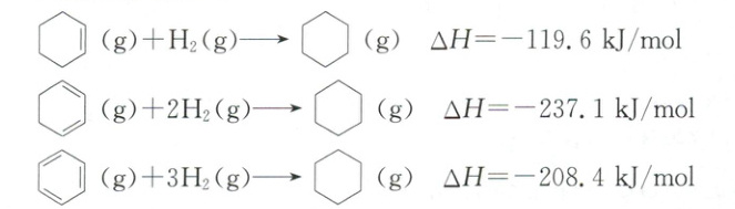 (3)苯与氢气加成生成环己烷放出的热量小于环己二烯与氢气加成的热量,说明什么?
