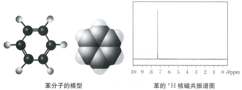 2. 下面是苯的两种分子模型和苯的$^1 H$核磁共振谱图: