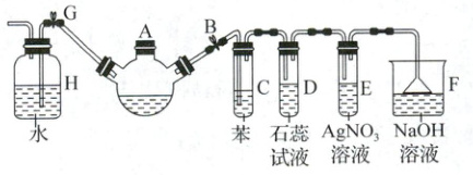 (1)关闭 G,打开 B,从装有少量苯的三颈烧瓶的 A 口加入少量溴,再加入少量铁屑,塞住 A 口,三颈烧瓶中发生的主要反应的化学方程式为_______。