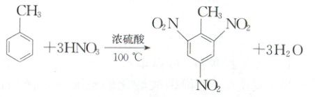 甲苯与浓硝酸、浓硫酸的混合酸在30 ℃时主要获得邻硝基甲苯和对硝基甲苯两种取代产物,而在100 ℃时则能获得不溶于水的淡黄色针状晶体2,4,6-三硝基甲苯,简称三硝基甲苯,是一种黄色烈性炸药,俗称TNT,常用于国防和民用爆破。写出反应的化学方程式,该反应是否可以说明侧链对苯环产生影响?