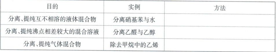 2.萃取是利用混合物中各组分在萃取剂中的溶解度不同而使它们相互分离的操作,分为固-液萃取和液-液萃取两种。分液漏斗是液-液萃取常用的操作仪器。