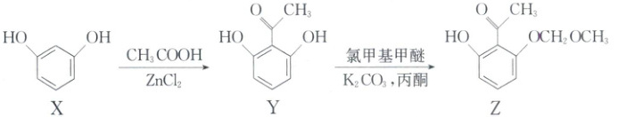 7. 异甘草素具有抗肿瘤、抗病毒等药物功效。合成中间体Z的部分路线如下: