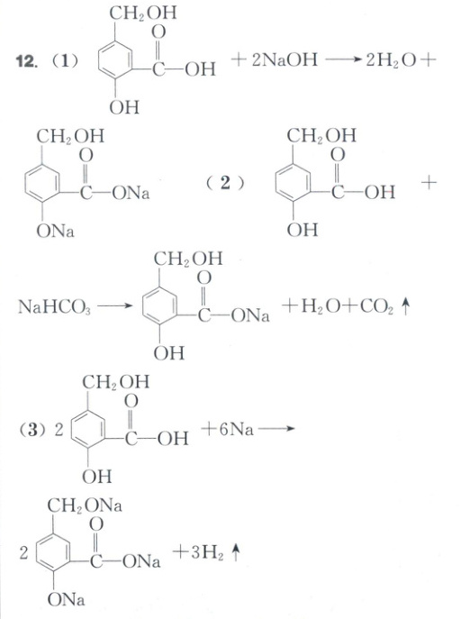 (2) A、C都能与$Na$、$NaOH$、$NaHCO_3$反应吗?若能反应,写出反应的化学方程式(若有同分异构体,只写出其中一种所发生反应的化学方程式即可)。