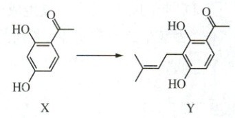 (标“*”处碳原子为手性碳原子),反应后有4个手性碳原子,B错误;Y中含有一个碳碳双键可以与$Br_2$发生加成反应,苯环上羟基邻、对位的氢原子可以与$Br_2$发生取代反应,有1个氢原子可以被取代,故1mol化合物Y最多可以消耗溴水中$2molBr_2,$C正确;碳碳双键两端的碳原子分别连接两个不同的基团或原子时存在顺反异构现象,化合物Y碳碳双键一端的碳原子连接两个相同的甲基,不存在顺反异构现象,D错误。