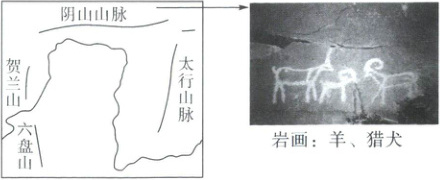 阴山岩画是中华民族文化遗产的重要组成部分,被誉为“无字天书”。两三千年前的先民们在崖壁上刻画,记录他们的生活。右图为阴山位置及岩画示意图。据此回答 17~19 题。
