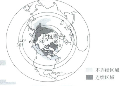 当土壤或岩石的温度连续两年以上低于 0℃时,就可发育形成多年冻土,冻土深层常年保持冻结。右下图为北半球多年冻土的连续区域和不连续区域分布图。据此回答 11~13 题。