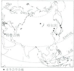 6.与特鲁吉纳相比,哈尔滨举办亚冬会的有利条件是(