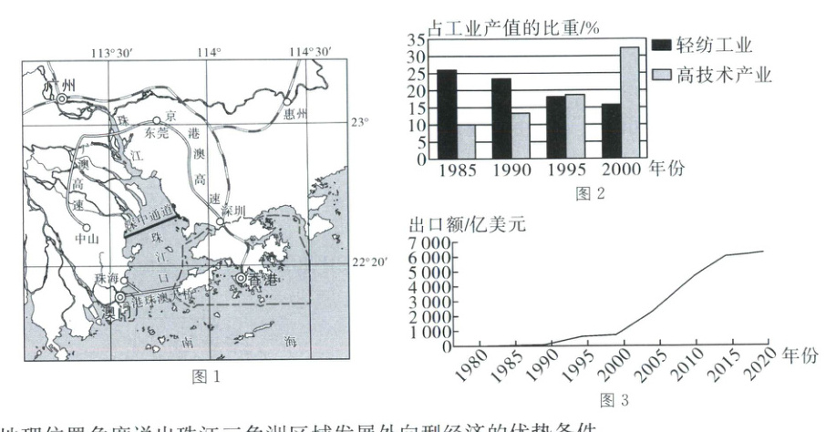 (2)据图2和图3,说出珠江三角洲区域外向型经济发展的特点。