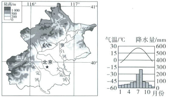 24.B 25.D [解析]第24题,读图可知,北京市气温1月较低,7月较高,7、8月降水最多,11月一次年3月降水较少,夏季高温多雨、冬季寒冷干燥的特征是温带季风
