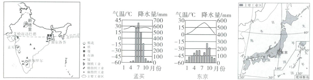 4. 读印度和日本相关资料图,下列叙述正确的是(