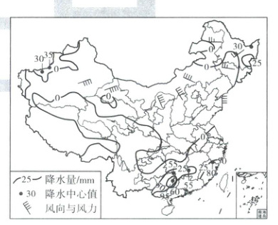 人类活动与天气息息相关。 右下图为我国某年 5 月 30 日 8 时—5 月 31 日 8 时风力与降水量预报图。 据此回答 8~10 题。