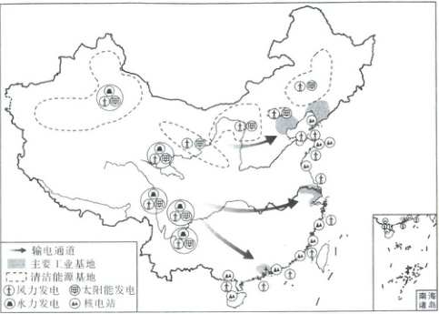 15.D 解析:第15题,根据图例可知,太阳能发电在我国西北地区、北方地区、青藏地区集中分布;风力发电主要分布在西北地区、北方地区及沿海等风能丰富区;水力发电集中在西南等地区;核电站主要分布在东部沿海地区。故选D。