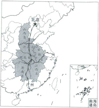 中部地区在中国发展中起到“脊梁”的支撑作用。 读中部六个省级行政区(阴影部分)分布示意图,回答 22~23 题。