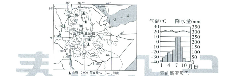 材料二 埃塞俄比亚地形分布图和亚的斯亚贝巴气候资料图