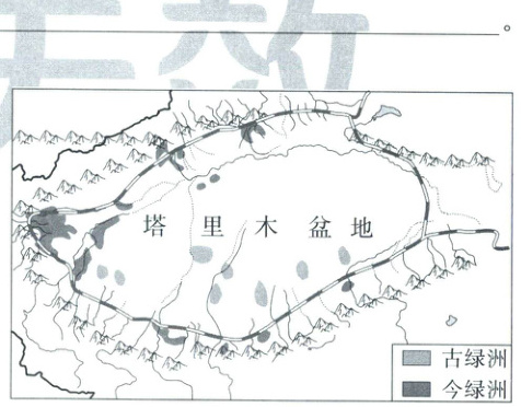 (1)小组成员通过查阅资料和实地调研,发现古绿洲和今绿洲的空间位置有明显的变化,绿洲由古到今的变化规律是