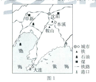 (1)读图1可知,甲工业区煤、铁、石油等矿产资源丰富;临近渤海、黄海,有铁路经过,海陆交通便利;城市多,劳动力资源丰富;甲工业区是我国的辽中南工业区,消费市场广阔。读图2可知,乙工业区煤、铁等矿产资源丰富;有密西西比河和五大湖发展水运,有铁路经过,水陆交通便利;乙工业区是美国的五大湖工业区,城市和人口众多,消费市场广阔。