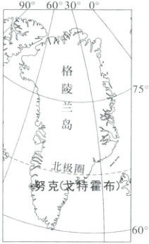 $7$. 格陵兰岛首府努克(戈特霍布)的地理坐标约为(