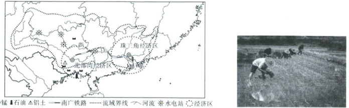 材料一 下图为广西北部湾经济区和珠三角经济区示意图以及广西某地人们穿戴示意图。