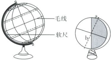 1.制作地球仪时,同学们使用了泡沫球、毛线、铁丝、软尺等材料。如右图所示,用毛线围出赤道,用软尺主要是为了(