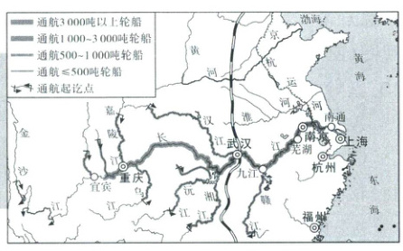 24.长江经济带发展战略实施以来,沿江地区协作创新,推动“黄金水道”再升级。读长江航运示意图,回答下列问题。(8 分)