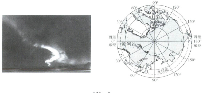 极光是太阳风中的高能粒子与高层大气碰撞产生的发光现象,常见于高纬度地区的夜晚,我国在黄河站建立光学观测平台用于开展极光研究。 读 12 月黄河站拍摄的极光景观及黄河站位置图,回答 11~12 题。